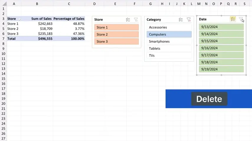 Then we simply hit ‘Delete’ on the keyboard and that’s it – the slicer’s gone!