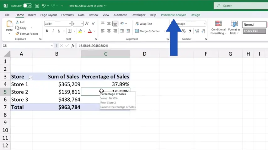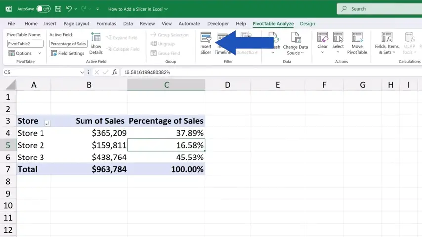 Then go to the ‘PivotTable Analyze’ tab where we can find ‘Insert Slicer’.