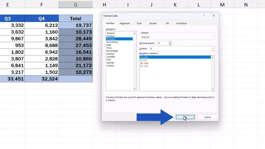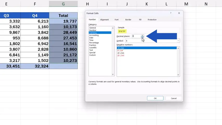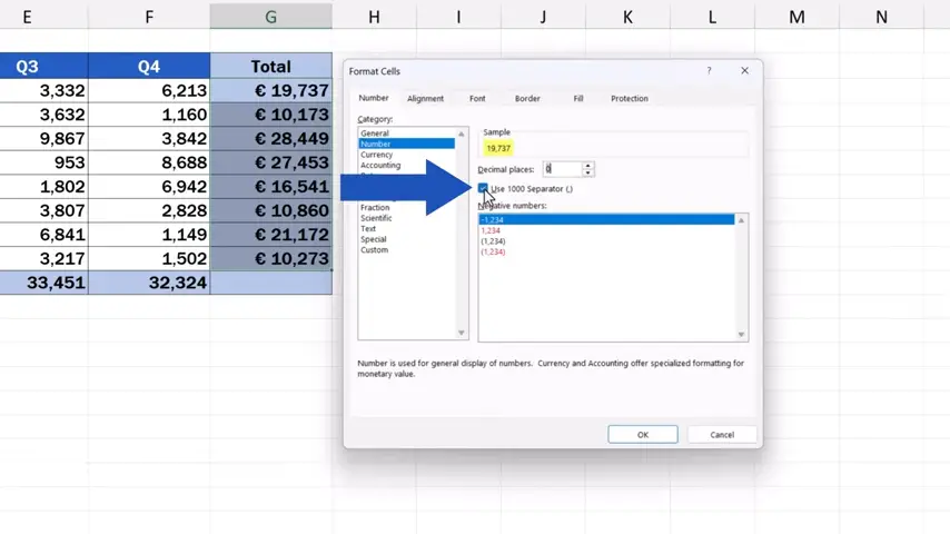 Of course, we can set the number of decimal places to be displayed here, too. Or we can tick or untick the use of the thousand separator, whatever works better for us.