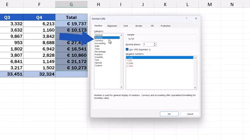 If you’d like to show no currency next to the figures, in the field ‘Category’ click on the option ‘Number’.