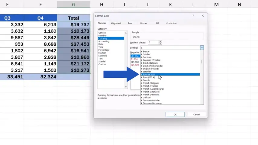 Press OK and here we go! The format’s been updated again and the totals show in Euros, just as we’ve selected.
