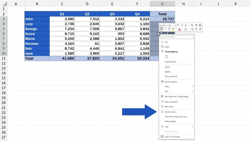 Now, we use a right-click to get to this list of options where we look up ‘Format Cells’ and click on it.
