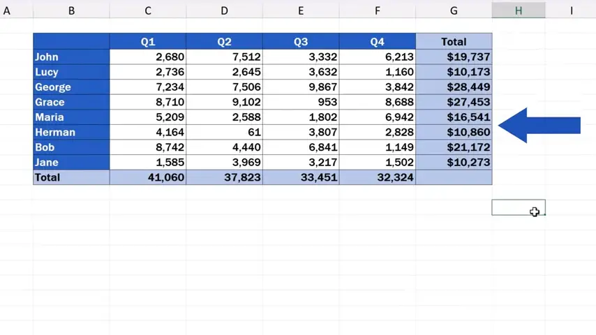 To set a specific currency for certain figures in a data table we start with selecting all the cells where we want to change the currency. We can click on just one cell or select multiple cells at the same time, depending on what we need.