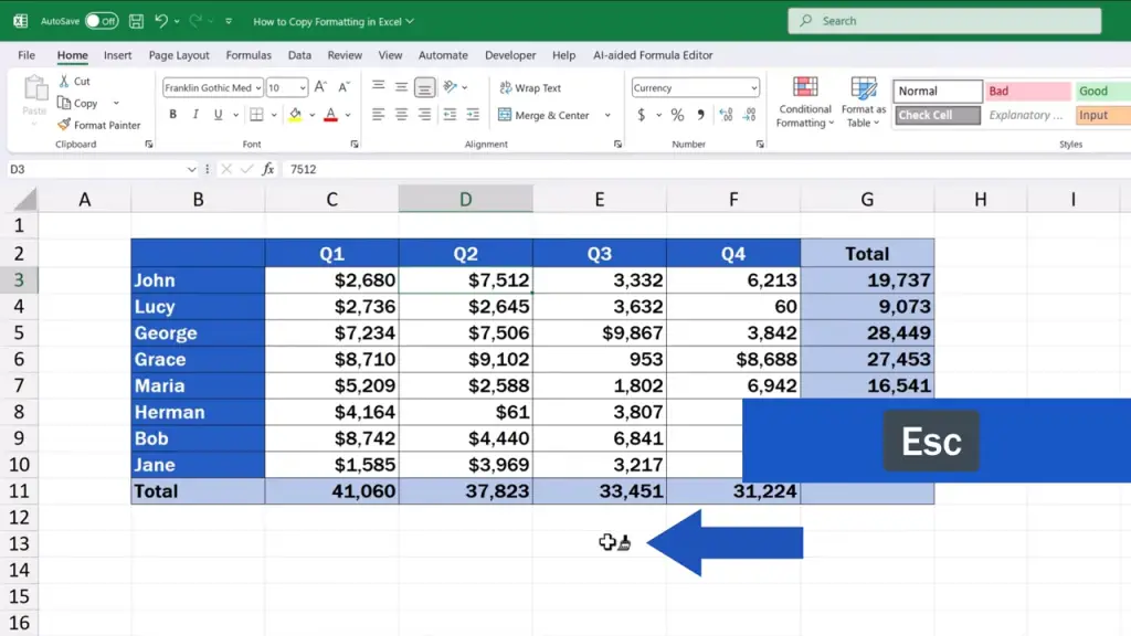 Once we’ve finished the work with Format Painter, we simply press the Escape key, the paintbrush icon next to the cursor will disappear and we’re back to normal.