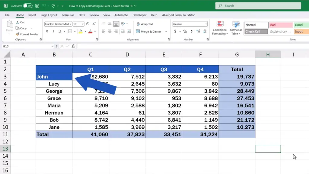 If you need to apply formatting to multiple areas across an Excel spreadsheet, you don’t need to click on Format Painter over and over again. Here’s what to do.