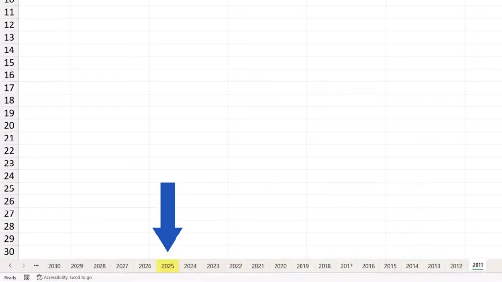 Let’s say we want to copy the sheet ‘2025’, so we click on it.