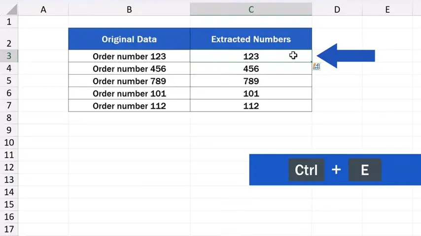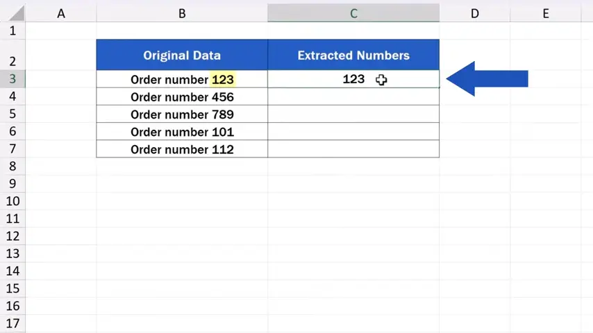 Excel has recognised the pattern and used it to fill the rest of the cells automatically with the extracted numbers. All this thanks to the Flash Fill function.