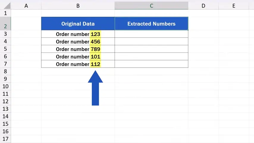 Let’s say we want to take just numbers from the data in column B and extract them to column C.