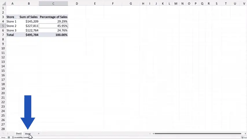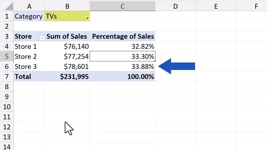Click on OK, and we see right away the TVs sales figures for each of the stores.