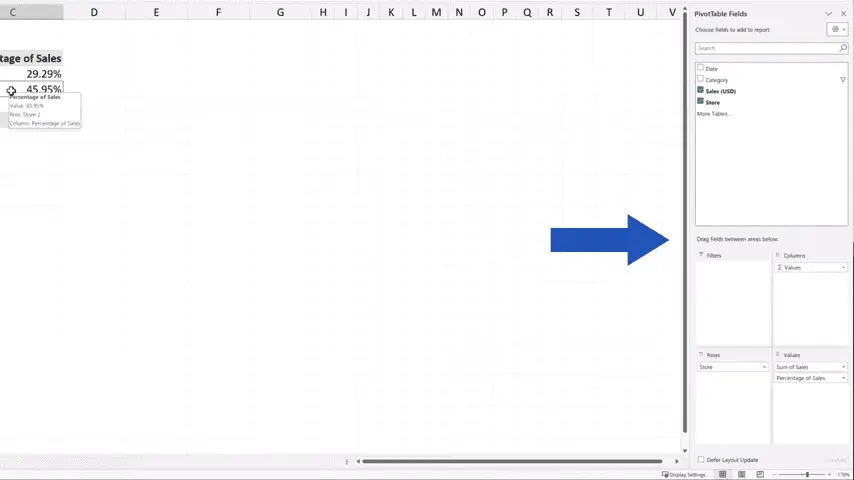 When we don’t need the filter anymore, we can easily remove it from the pivot table. Click anywhere within the pivot table and the pane on the right appears again.