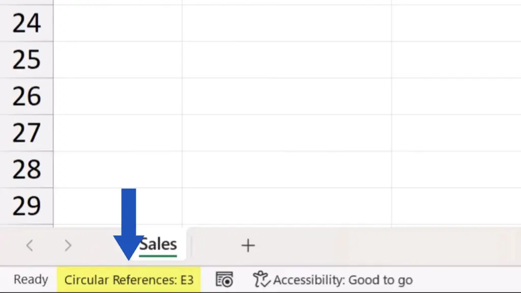 Another place where to check an occurrence of a circular reference in the spreadsheet is all the way down here, on the left, where we can also find various statuses and information.