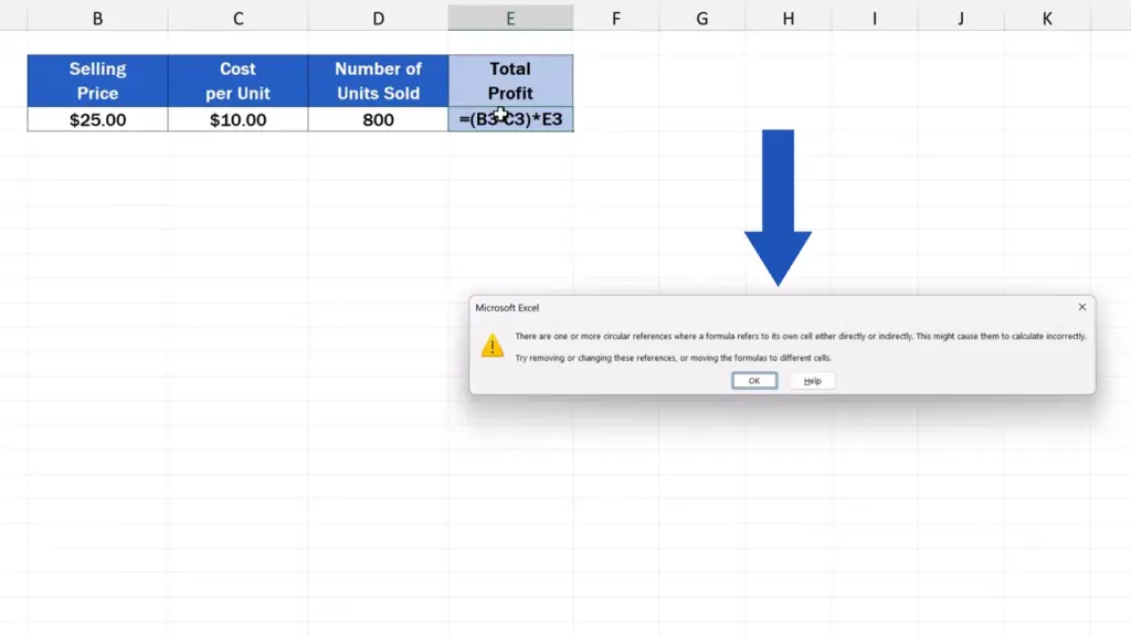 A circular reference in Excel occurs when a formula refers to its own cell. In other words, the cell is trying to process a calculation using a formula that includes the cell itself, so basically, it uses the result before the calculation’s been done.